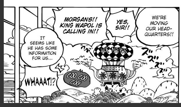 아마도 이 단서는 모건이나 원피스 세계에 충격적인 뉴스를 보도할 수 있는 그의 뉴스 쿠의 성격을 나타냅니다.