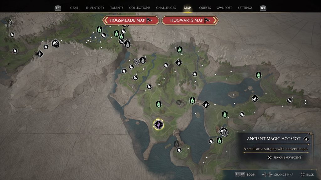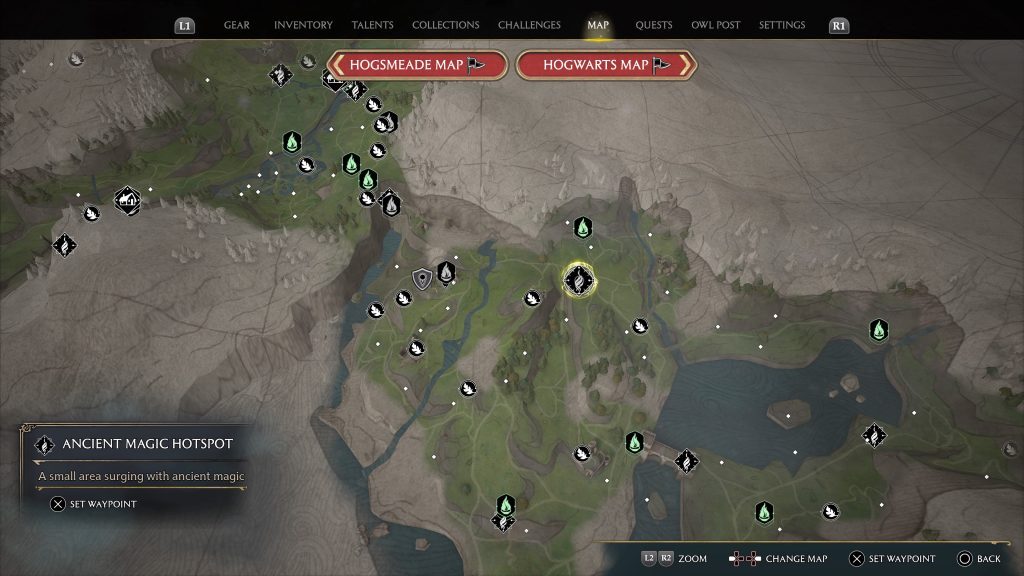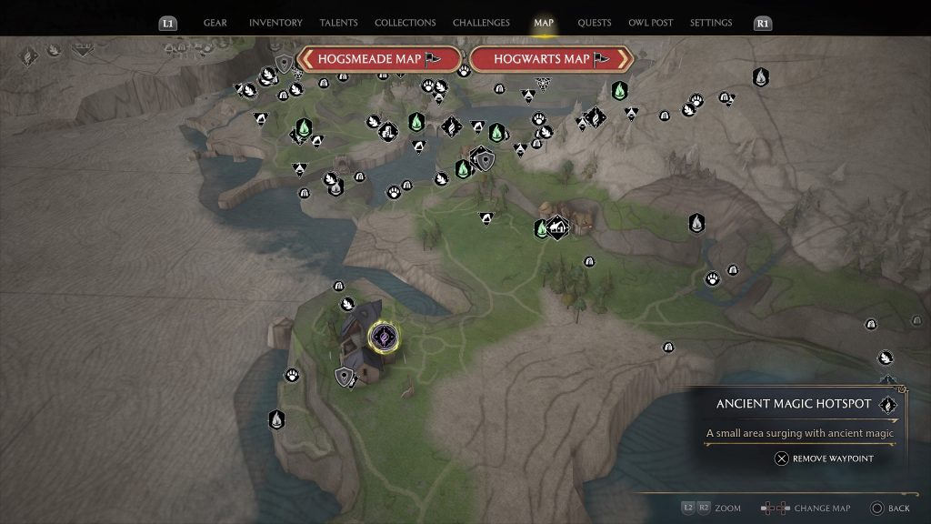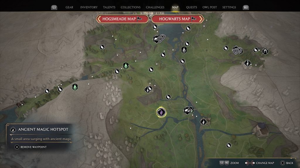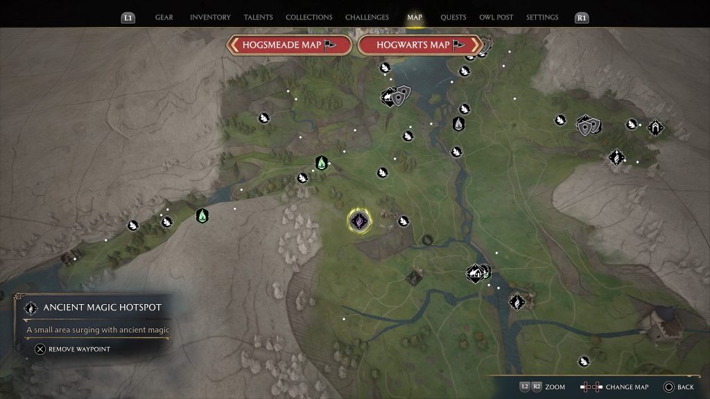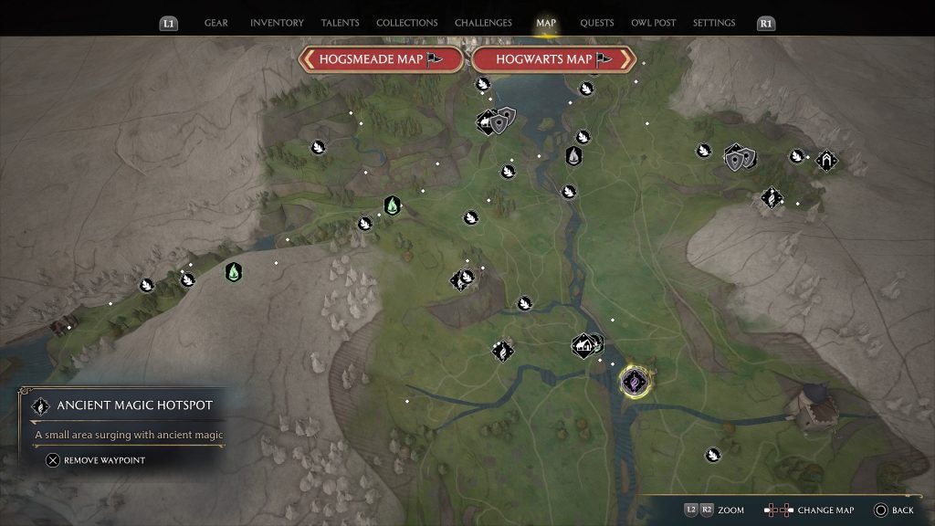 - Hotspot #2 : Hogwarts 북쪽의 Forbidden Forest, Collector's Cave Floo Flame 서쪽, East North Hogwarts Region Floo Flame 남쪽에서 찾을 수 있습니다. 이것은 수집할 마법이 있는 또 다른 폐허입니다.