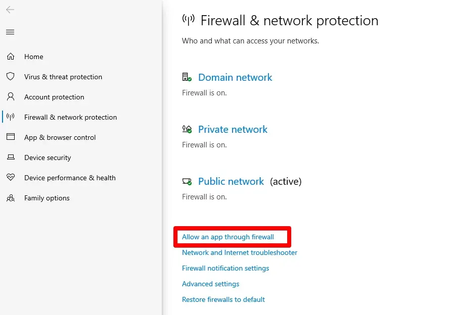 방화벽이 Roblox를 시스템에 대한 위협으로 간주하는 경우방화벽 이 허용하는 앱 목록에 Roblox를 추가해야 합니다.