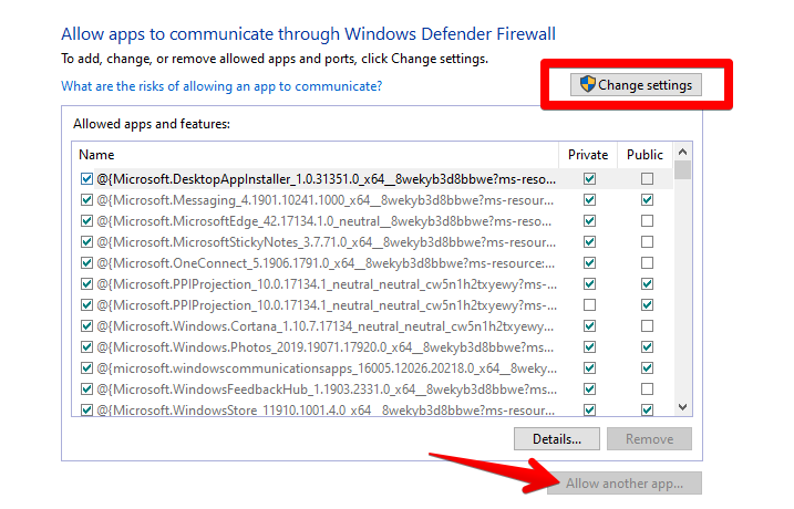 이제 마지막 단계를 완료한 후 열리는 다음 창에서 몇 번 클릭해야 합니다.먼저 "설정 변경"을 클릭하여 "다른 앱 허용" 옵션에 액세스할 수 있도록 합니다.완료되면 후자를 클릭하고 다른 창을 여는 자신을 보십시오.