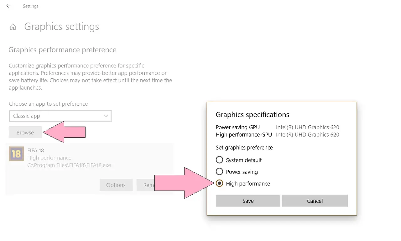 그런 다음 찾아보기 > Red Dead Redemption 2 응용 프로그램 추가 > 고성능 선택을 클릭하면 완료됩니다.