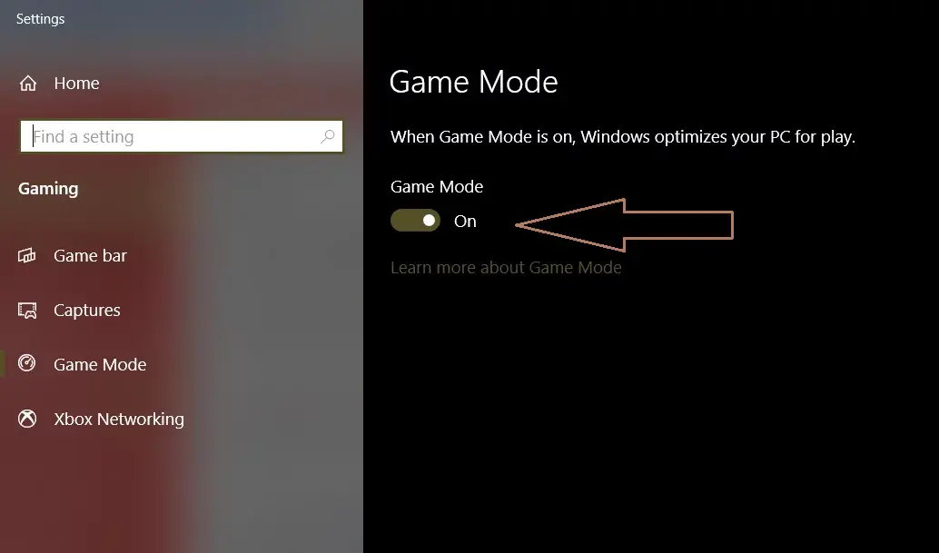시작 > "게임 모드" 입력 > 첫 번째 결과 열기로 이동합니다.