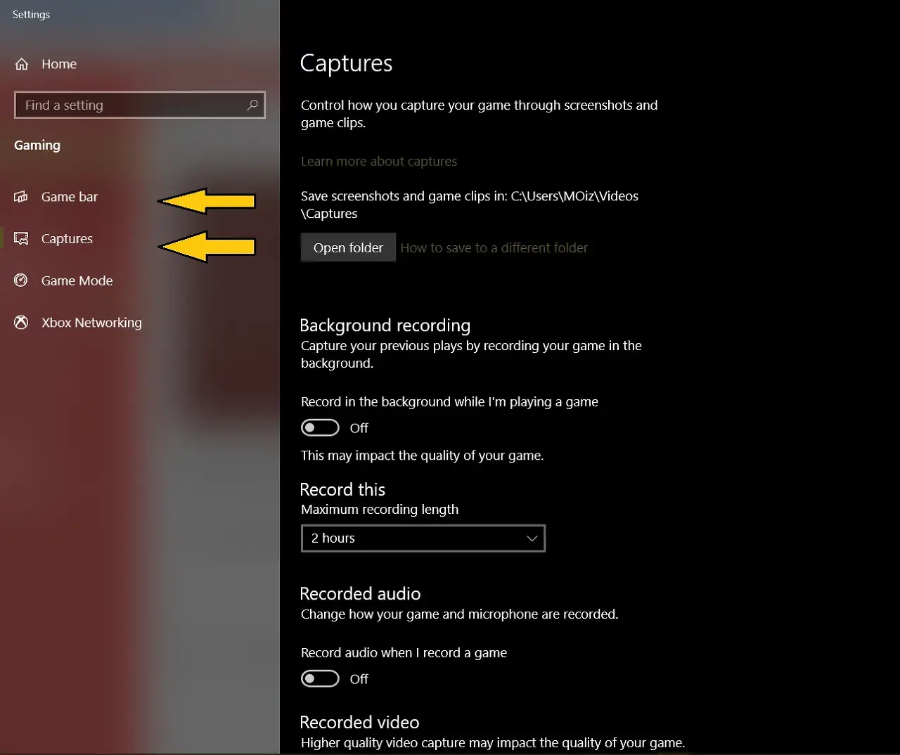 이제 Game Bar 및 Captures 탭의 모든 항목이 비활성화되어 있는지 확인하십시오.즉, 각 옵션이 선택 취소되어 있고 두 탭 모두에서 알림이 활성화되어 있지 않습니다.