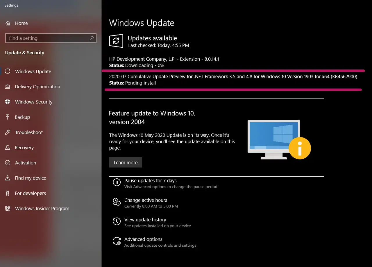 시작 > Windows 업데이트 > 업데이트 확인 열기로 이동합니다.