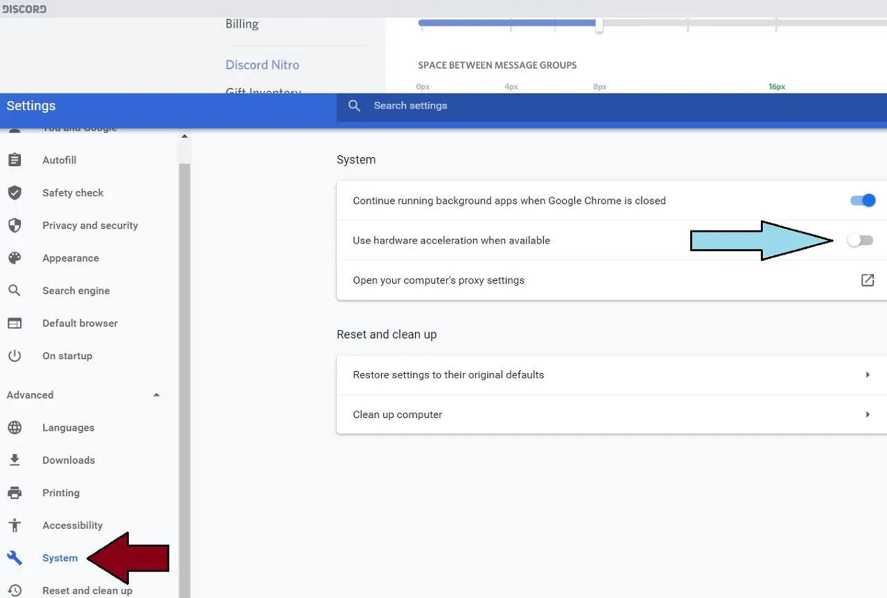 변경 사항을 적용하려면 하드웨어 가속을 비활성화하고 Chrome을 다시 시작하십시오.