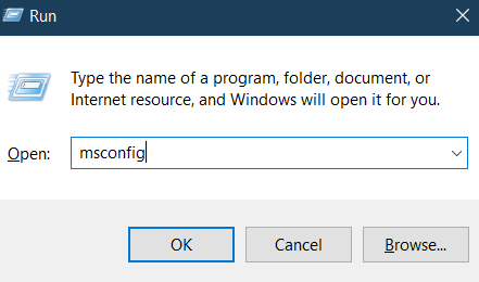 실행을 열고 msconfig를 입력하고 입력합니다.
