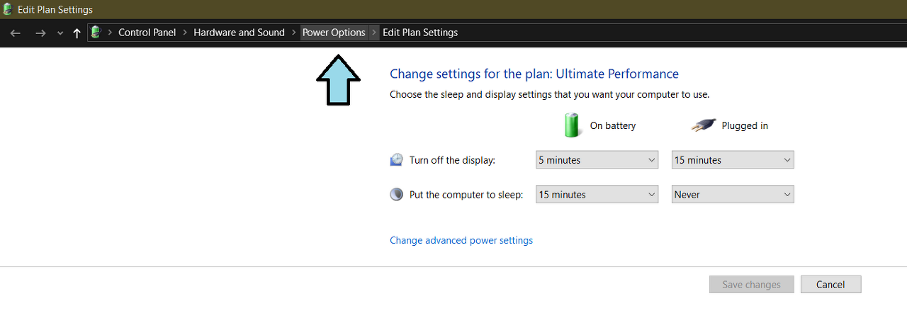 이제 검색 > 유형 편집 전원 계획으로 돌아가서 > 전원 옵션을 클릭합니다.