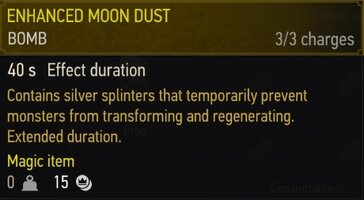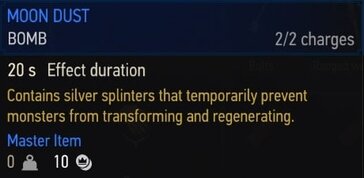 옥센푸르트 북동쪽에 위치한 약초상에게서 강화된 문 더스트 공식을 구입할 수 있습니다.