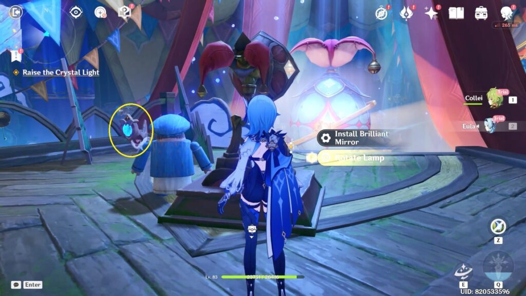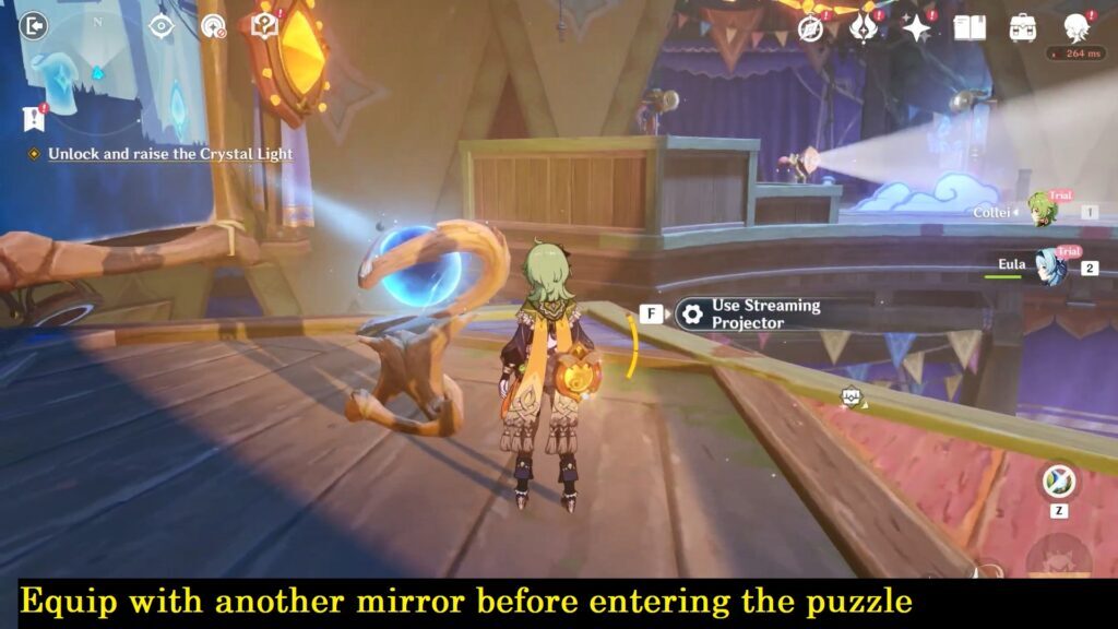 - 그런 다음 주황색 Brilliant Mirror를 두 번째 램프에 삽입하여 커튼을 엽니다. 이것은 또한 갇힌 Hydro Eidolon을 풀어줄 것이며, 스트리밍 프로젝터로 변신하고 새로운 프리프린트 퍼즐을 제공할 것입니다.