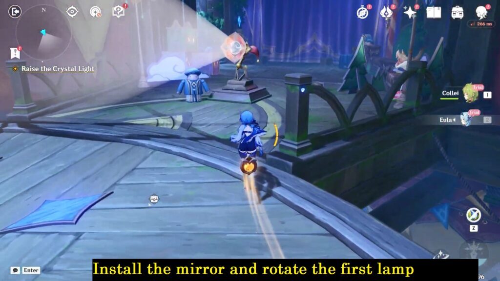 새로 열린 길로 가서 계단을 올라 2층으로 올라갑니다. 여기에서 플레이어는 두 개의 빛나는 램프 퍼즐을 조작하여 Crystal Light를 다음 레벨로 끌어올려야 합니다.