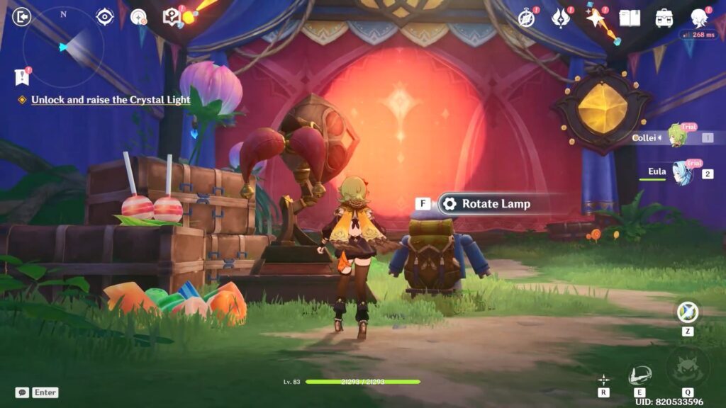 Fairyland에서 짧은 컷씬 후에 도메인에 들어가게 되며, 여기서 다음 작업은 Crystal Light를 잠금 해제하고 높이는 것입니다. 처음 접하게 될 램프 퍼즐은 튜토리얼이 될 것입니다. 램프를 한 번 회전시키기만 하면 됩니다. 이렇게 하면 광선의 방향이 바뀌고 커튼이 열리면서 Crystal Light를 찾습니다.