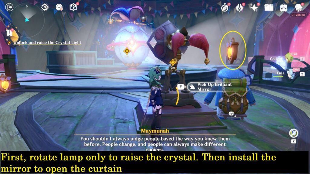 - 지금 다음 단계로 이동하려면 커튼을 열어야 합니다. 이렇게 하려면 무대 중앙에 있는 주황색 Brilliant Mirror를 선택합니다. 생성된 모든 적을 물리치십시오. 다시 램프로 돌아가 Brilliant Mirror를 설치합니다.