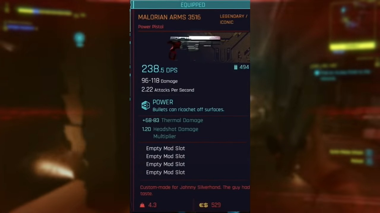 - 사이버펑크 2077의 최고 권총은 종종 높은 데미지 출력을 가집니다.