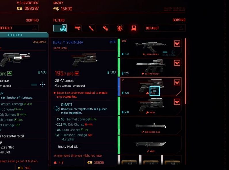 사이버펑크 2077에서 다음으로 좋은 스마트 권총은 SKIPPY입니다.그것은 사이버펑크 2077의 상위 5개 권총 중 하나로 여겨집니다.그것의 주된 이유는 헤드샷 조준 기능입니다.