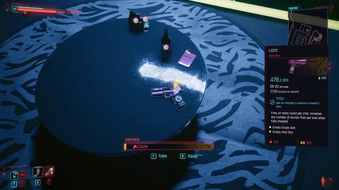Cyberpunk 2077에서 쉽게 획득할 수 있습니다.플레이어는 자동 사랑 퀘스트를 거쳐야 하며 주디 덴 사무실의 테이블 위에 리지 총을 놓을 수 있습니다.