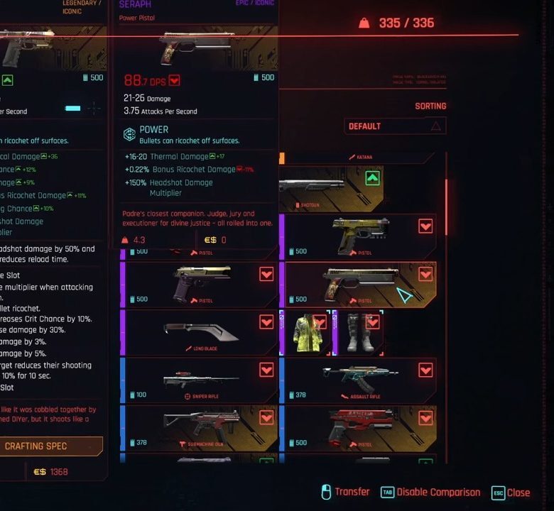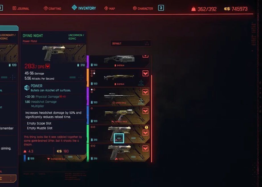 모든 피스톨을 염두에 두고, 저는 슬라우트-오-매틱 권총을 목록 끝에 순위를 매겼습니다.이 권총은 매우 흔하며 사이버펑크 2077 전체에서 쉽게 찾을 수 있습니다.파워 타입에 속하는 슬라우트-오-매틱 권총은 100명의 에디만을 위해 나이트 시티 전역에 있는 자판기에서 얻을 수 있습니다.