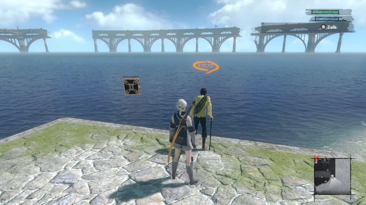 먼저 낚시 기능을 아직 잠금 해제 하지 않은 경우 잠금을 해제해야합니다 . 이야기 가 요나를 위해 샤먼 물고기를 모으기 위해 Seafront 를 방문하도록 안내 할 때, 부두에있는 남자와 대화 해야합니다 (위 그림 참조). 그러면 그는 막대와 미끼를 줄 것입니다. "어부의 갬빗"퀘스트 를 제공하는 NPC이기도합니다 .