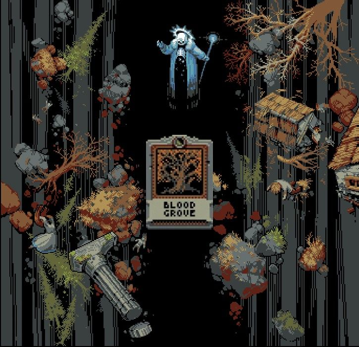 Blood Grove는 Forest 옆에 배치해야합니다. 그것은 특정 건강 임계 값 아래로 떨어지는 적을 삼키는 배고픈 숲을 만들 것입니다 . 이것은 루프 전체에서 훌륭하지만 보스가 스폰되는 지역 인 캠프 파이어 타일 옆에 배치하면 특히 강력합니다.