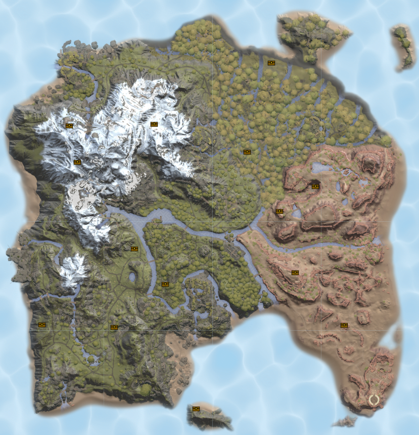 흉부 위치는 지도에서 볼 수 있다. 그들 중 다수는 하나 또는 그 이상의 아이템을 금고에서 필요로 하기 때문에 아마도 마지막 게임을 위해 이것을 남겨두는 것이 좋을 것이다.