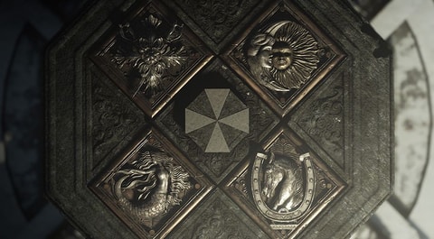 엄브렐러 사의 마크와 흡사 한 문양을 중심으로 4 개의 문장이 象ら있다. 마을 여기 저기에서 나온당하는 일이되는 문장. 어떤 의미가 숨겨져있는 것일까?