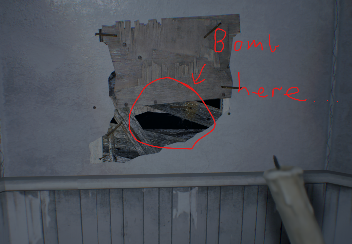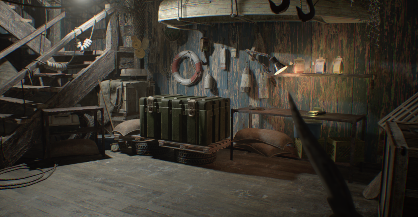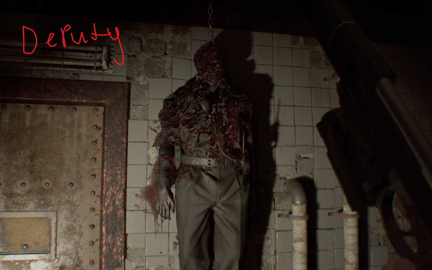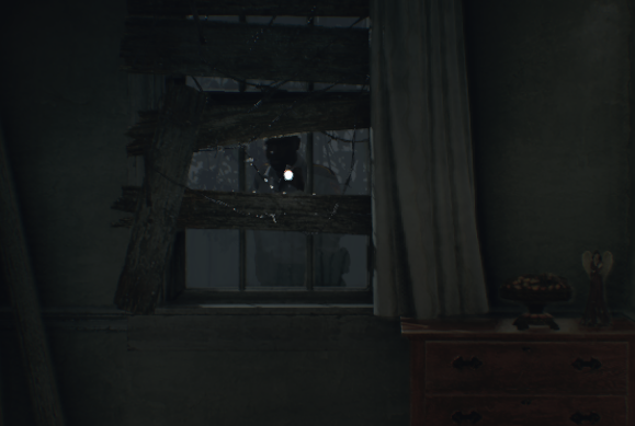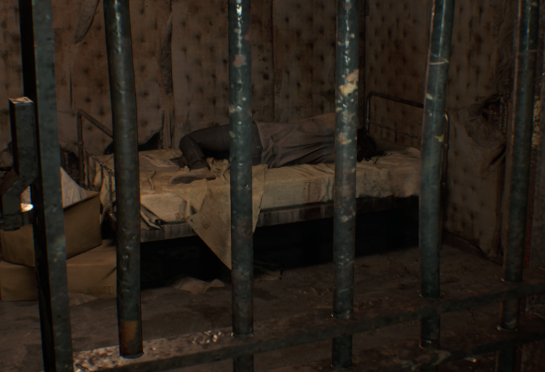 벽에 난 구멍으로 올라가서 찾을 수 있는 총알을 모두 모아라. 이 방에는 수류탄 발사기가 들어있지만 당신은 까마귀 키가 필요하다. 옆집에는 이 게임에서 첫 번째 괴물 적으로, 두 번의 헤드샷으로 죽일 수 있다.