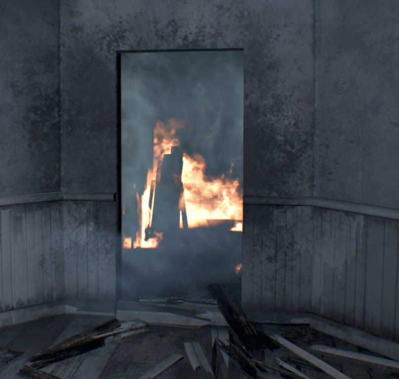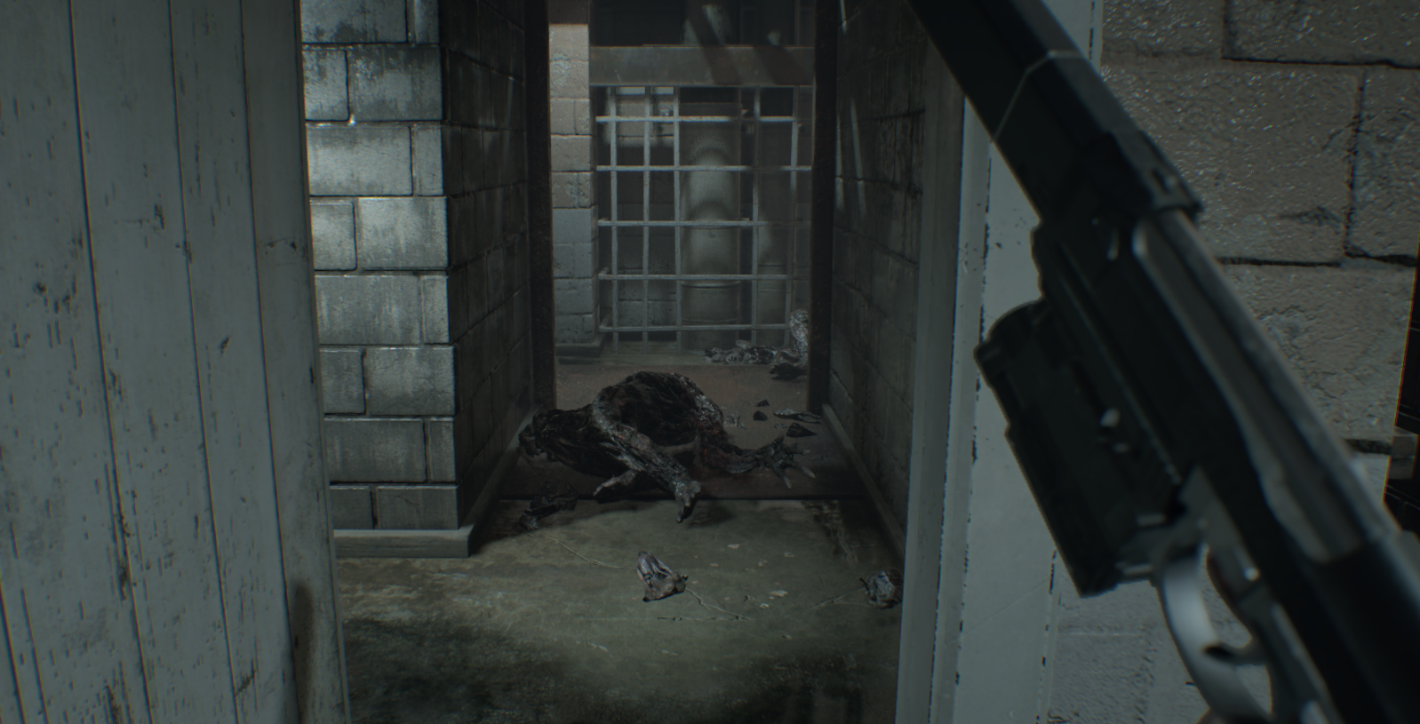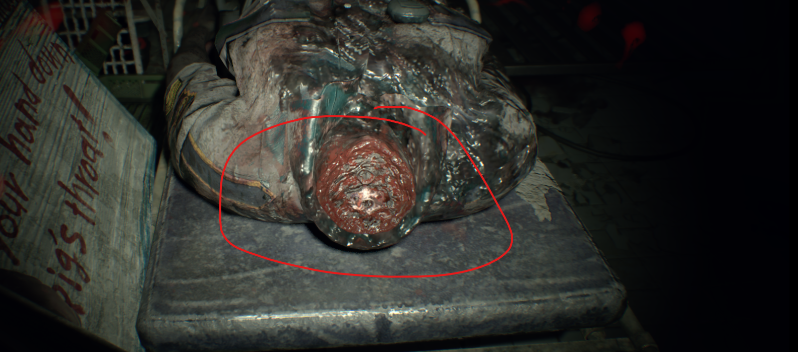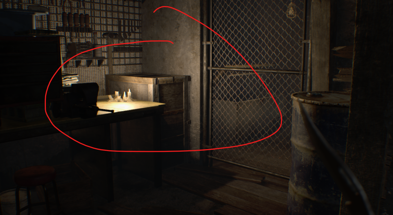 벽에 난 구멍으로 올라가서 찾을 수 있는 총알을 모두 모아라. 이 방에는 수류탄 발사기가 들어있지만 당신은 까마귀 키가 필요하다. 옆집에는 이 게임에서 첫 번째 괴물 적으로, 두 번의 헤드샷으로 죽일 수 있다.