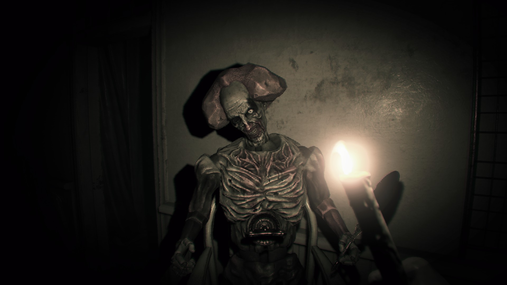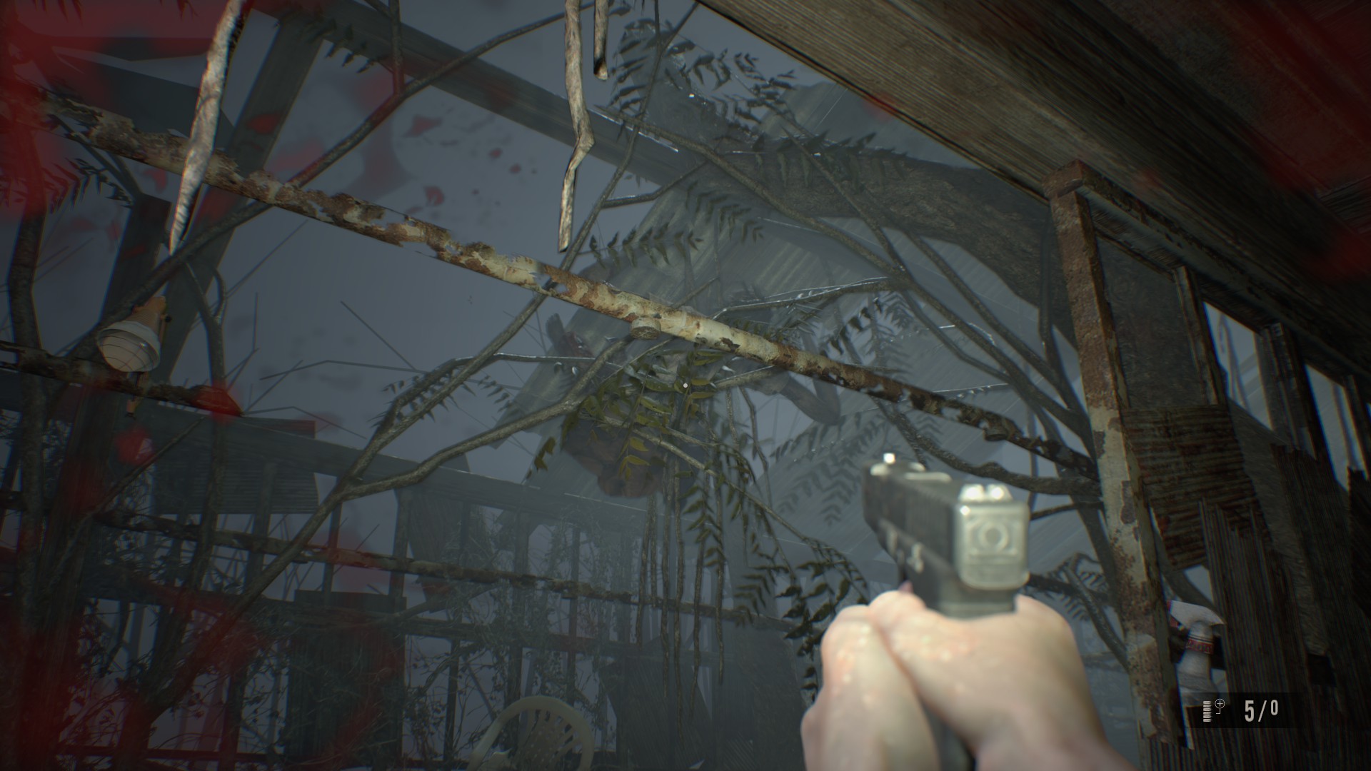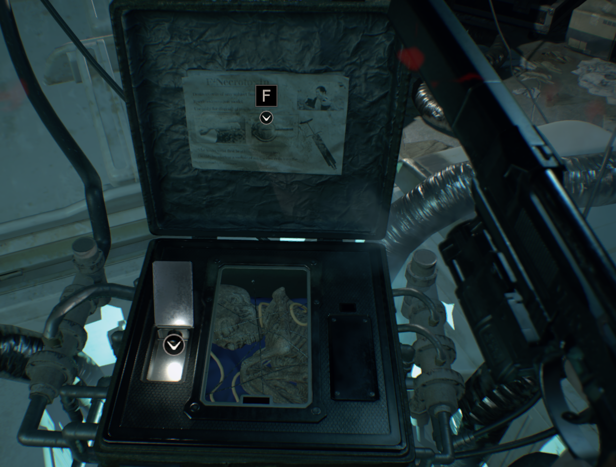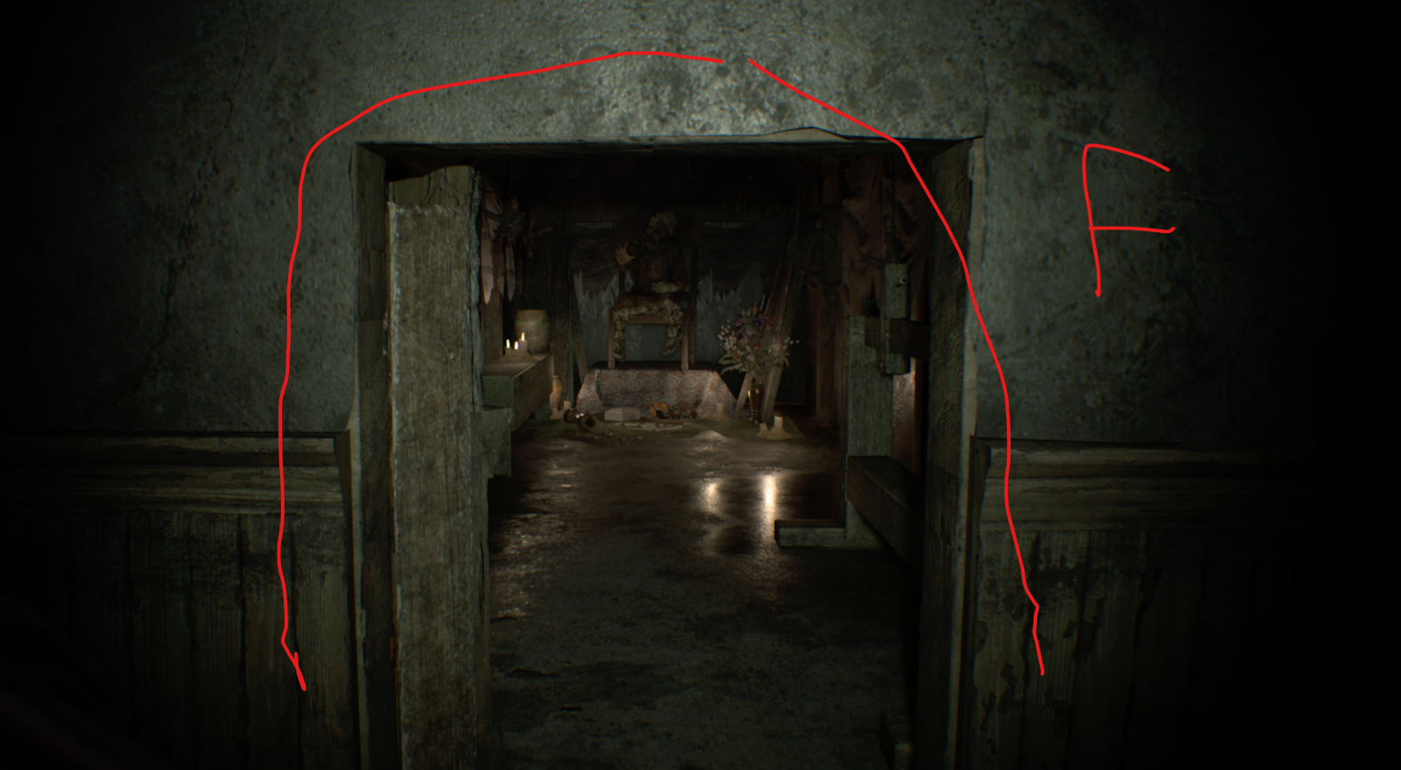 벽에 난 구멍으로 올라가서 찾을 수 있는 총알을 모두 모아라. 이 방에는 수류탄 발사기가 들어있지만 당신은 까마귀 키가 필요하다. 옆집에는 이 게임에서 첫 번째 괴물 적으로, 두 번의 헤드샷으로 죽일 수 있다.