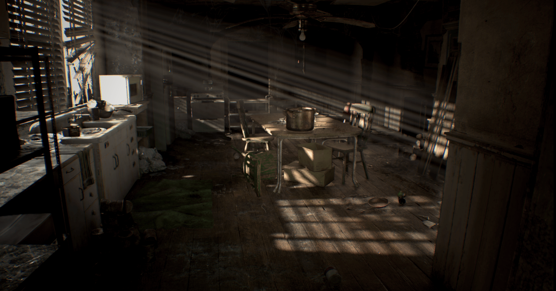 집안이 어수선하여 죽은 물건으로 뒤덮여 있다. 이 첫 번째 작은 지역에서 너에게 달려드는 것은 아무것도 없을 것이다. 원한다면 부엌에 있는 잡동사니들과 교류해라. 하지만 약간의 두려움이 생길 수도 있다.