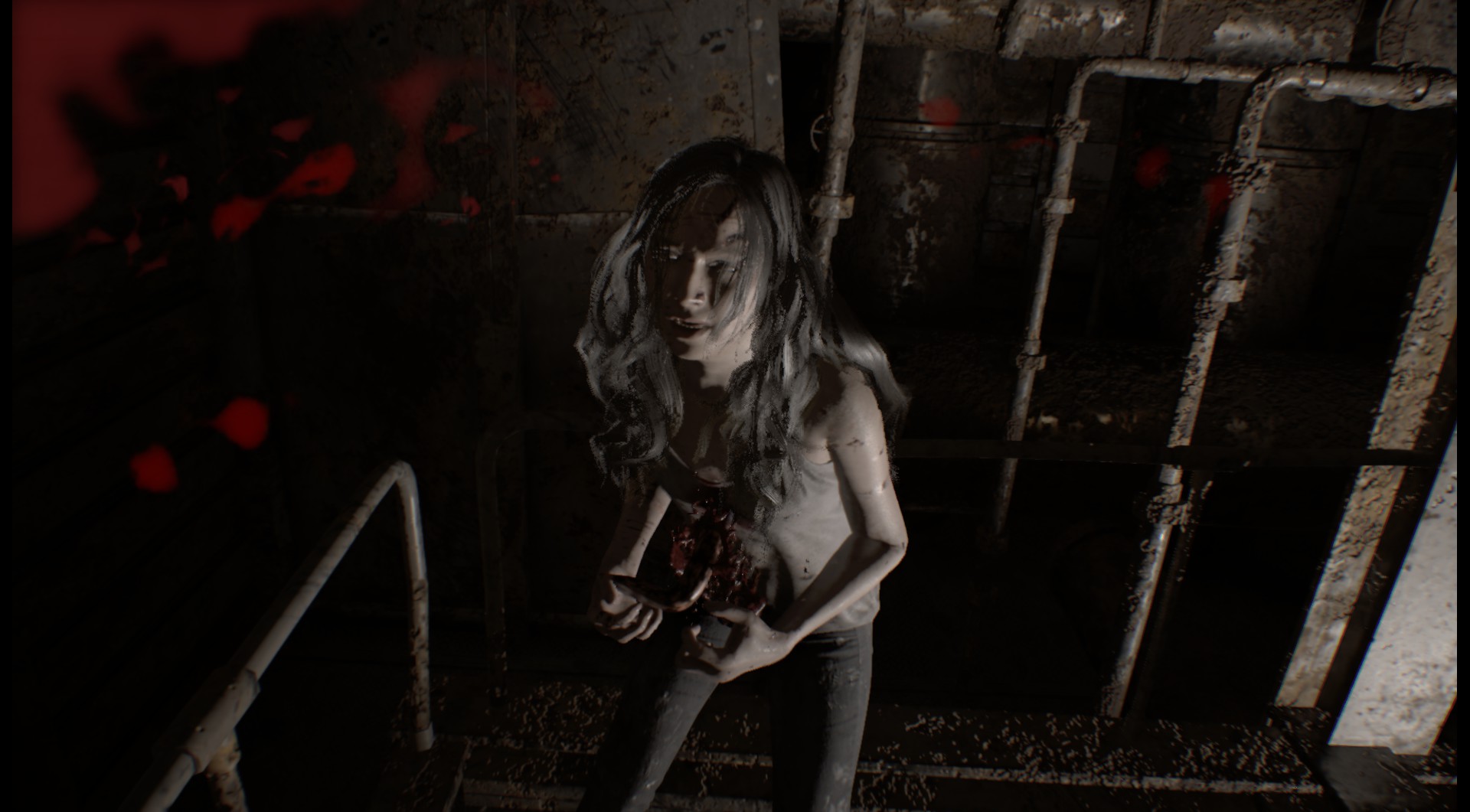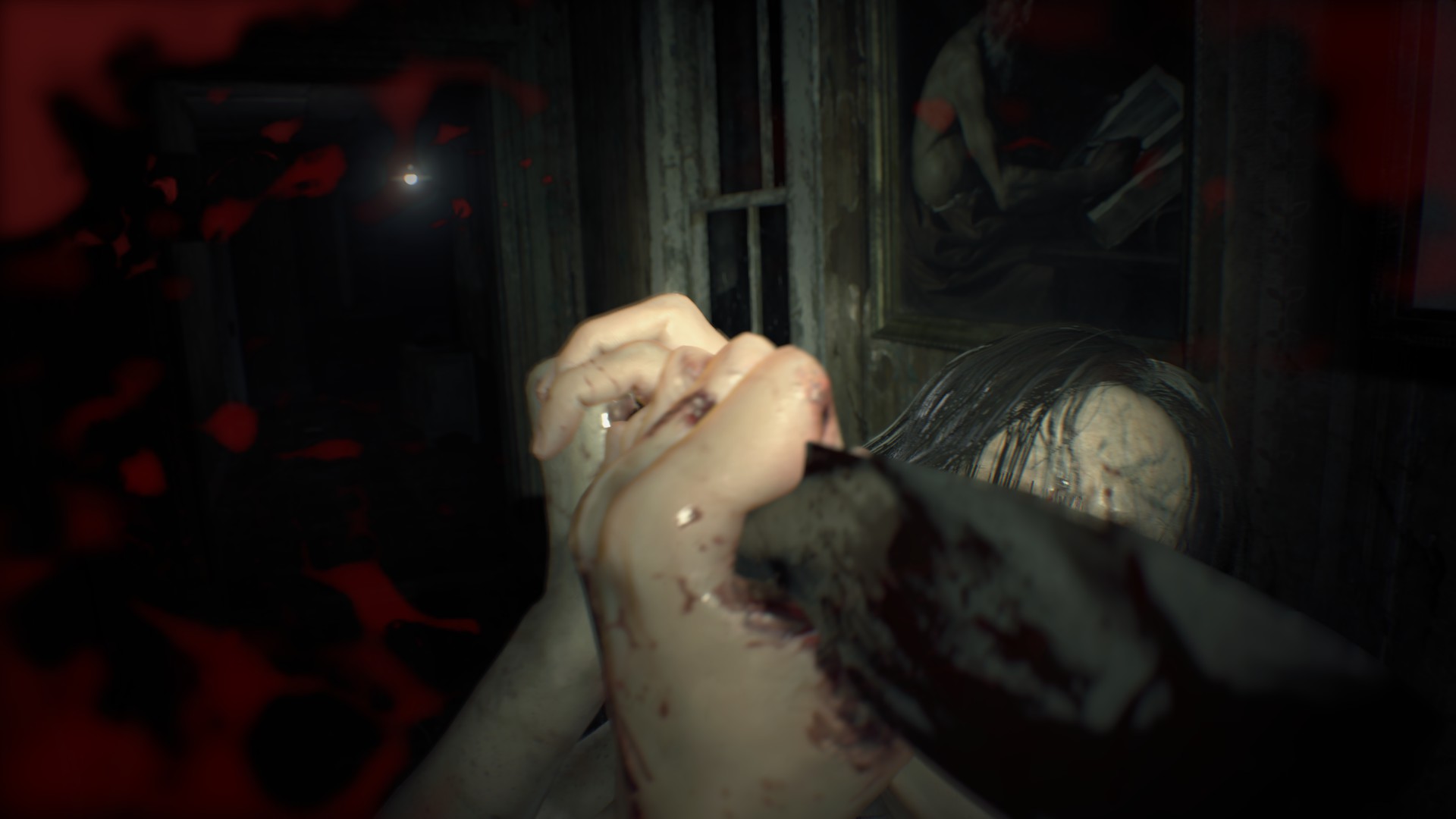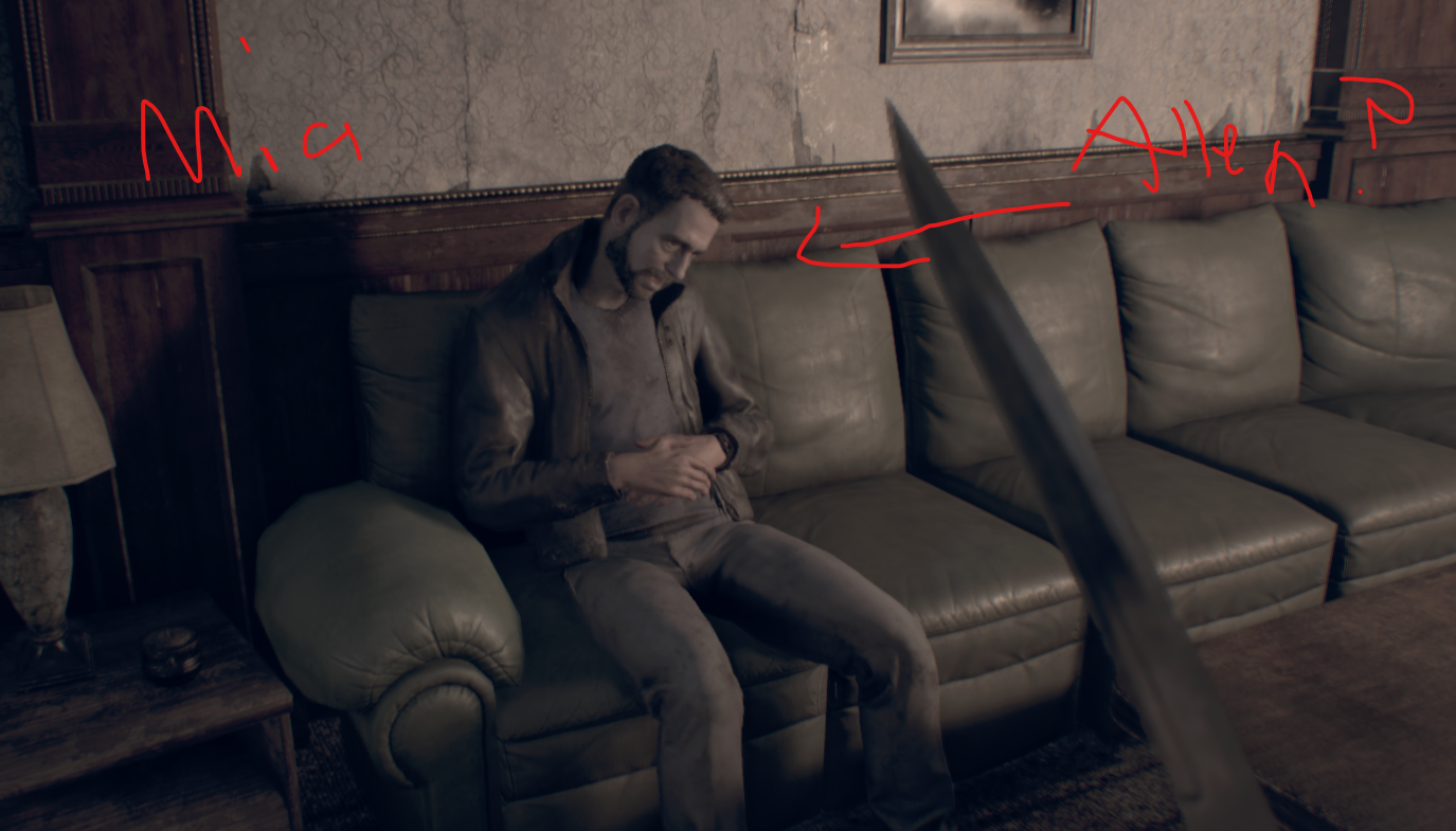 당신은 미아가 다른 가족 구성원들을 감염시키는 바이러스에 감염되어 있다는 것을 알게 될 것이다. 그녀는 칼로 너를 찌르려 하고 마루로 밀어 넣는다. 그녀는 네 손을 찌르고 너는 그녀의 얼굴을 때린다.