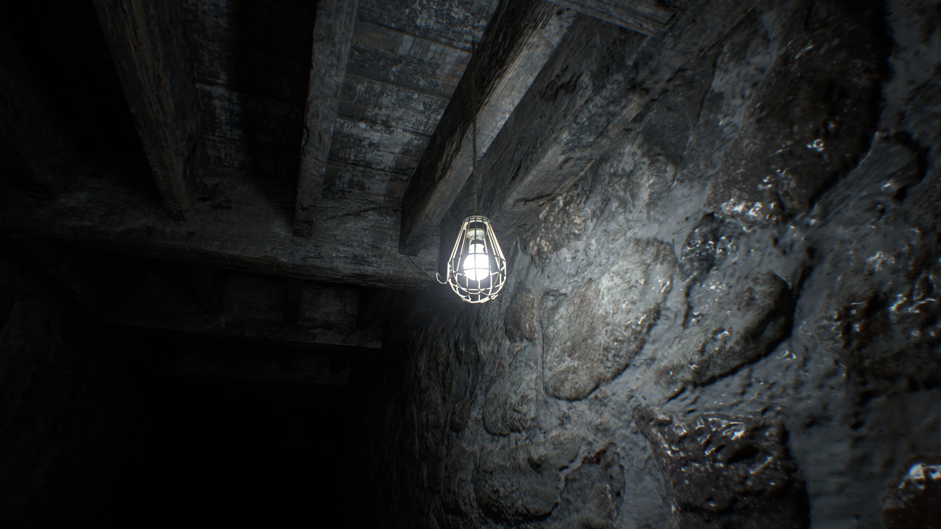 그는 거실로 들어가 불이 난 곳에 벽돌 하나가 튀어나온 것을 알아차린다. 그가 그것을 밀면 비밀 해치가 열리고 당신은 그를 따라 안으로 들어간다.
