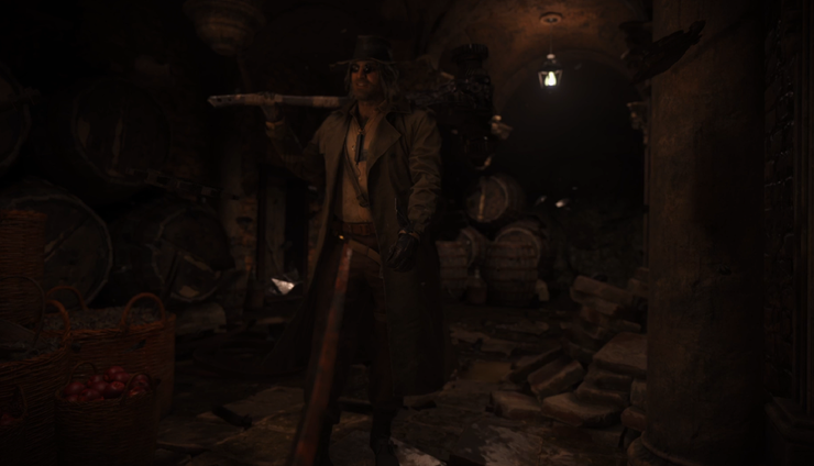 - 지금 중단하지 않고 당길 수 있습니다. 문을지나 계단을 올라가면 Castle Dimitrescu의 포도원이 있습니다.