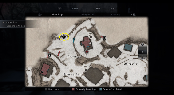 민간인을 위해 잠금을 해제 한 문 옆에있는 잠긴 신사로 내려 가서 자물쇠에있는 드라이버를 사용하여 악마 문장 을 얻으십시오 . 게이트를 다시 잠금 해제하고 필드로 들어가 컷 신을 트리거하십시오. Fallow Plot을 통해 묘지로 거슬러 올라가는 단계를 추적하십시오.