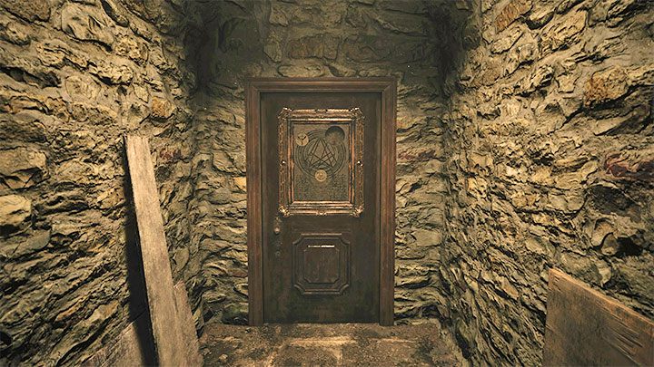 - 세 개의 닫힌 눈과 날아 다니는 까마귀의 상징을 나머지 메달, 즉 이미 문에 설치된 메달에 배치합니다.