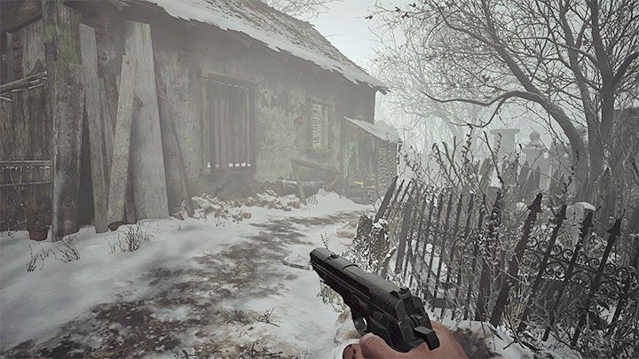 칼을 찾으면 곧 권총을 얻을 수 있습니다. Ethan은 라이칸으로부터 자신을 보호하기 위해 총 을 건네 줄 마을 사람들 중 한 명을 만날 것입니다 .