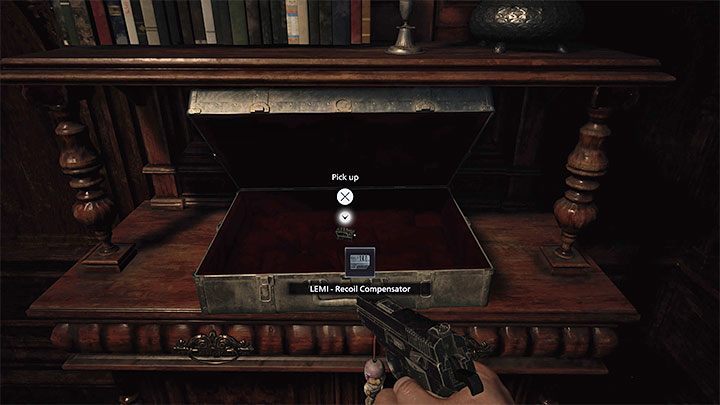 Dimitrescu의 성을 탐험하는 동안 LEMI 권총 업그레이드 -Recoil Compensator를 찾을 수 있습니다 . 업그레이드는 주방 옆 복도에있는 여행 가방에 있습니다. 보스 중 한 명인 Lady Dimitrescu의 첫 번째 뱀파이어 딸을 만난 후 곧 도착할 수 있습니다.