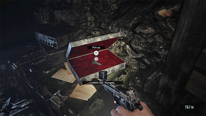 저수지에서 돌아온 후 위 그림의 동굴로 이동합니다. 이것은 도개교를 내리고 보트에 도달 한 다음 남쪽으로 이동하여 수행됩니다. 설명 된 수정은 W870 TAC Foregrip으로 산탄 총의 발사 속도를 향상시킵니다.
