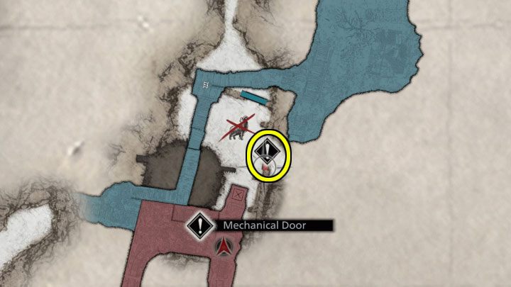 마을로 돌아가는 도중 모로를 처치 한 후 매그넘 을 찾을 수 있습니다 . 이미지에 표시된 기계식 문에 접근하십시오 . 이전에 획득 한 크랭크를 사용하여 열 수 있습니다.