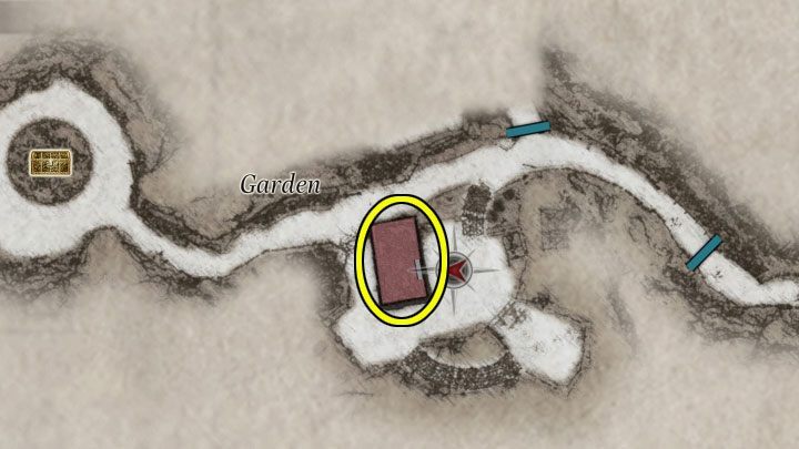 베네 비엔 토 집에서 마을의 주요 부분으로 돌아갈 때 두 번째 산탄 총을 얻을 수 있습니다 . 정원으로 돌아 오면 그림에 표시된 별장으로 이동합니다. 먼저 처리해야 할 약한 몬스터 무리가 근처에 있습니다.