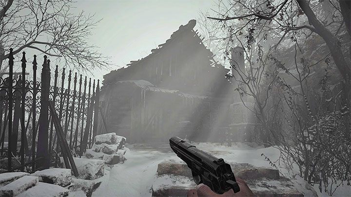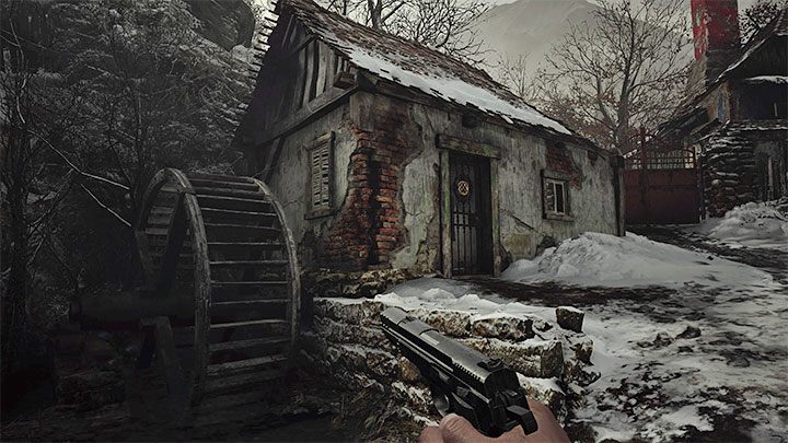 마을을 통과 할 때 늑대를 조심해야합니다. 늑대를 죽이거나, 탈출하거나, 몰래 다가 갈 수 있습니다. 목적지는 그림에 표시된 오두막입니다. 그것을 열려면 Ethan이 훨씬 일찍 얻은 강철 휘장 열쇠 가 필요합니다 .
