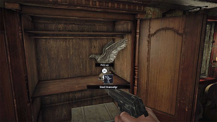 옷장 안에는 강철 Hraesvelgr 보물 (Duke에게 판매) 과 F2 소총 고용량 Mag 무기 업그레이드 (스나이퍼에 맞음 ) 가있는 여행 가방이 있습니다.