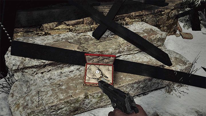 궁극적으로 루이 자의 집 폐허에 도달해야합니다. 불에 타 버린 집 앞 계단에서 상자와 그 안에 핵심 아이템 인 루이 자의 목걸이가 있습니다.
