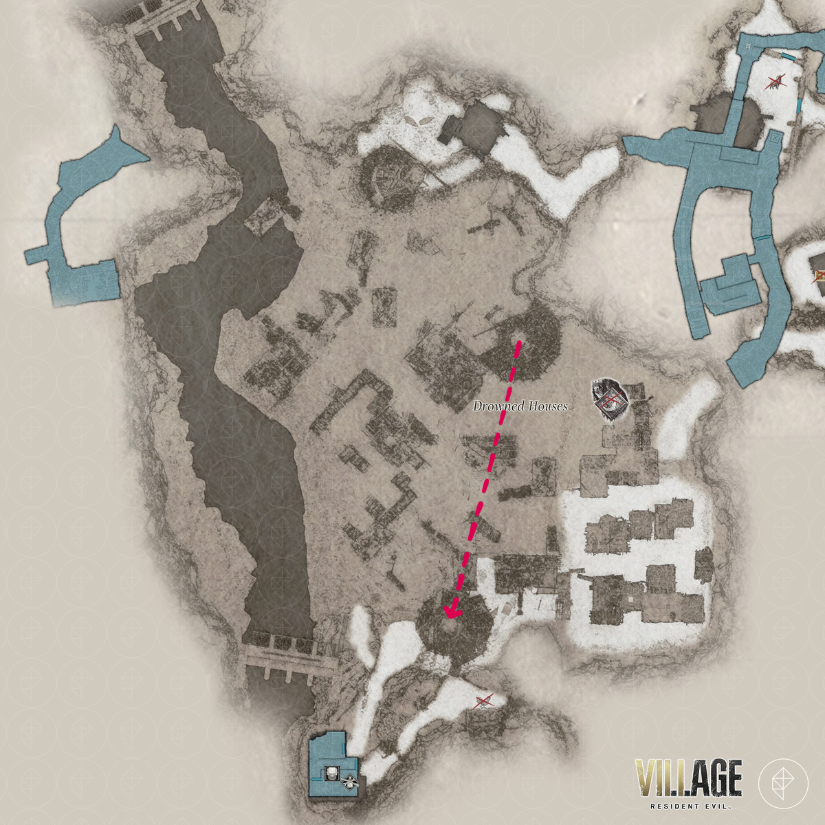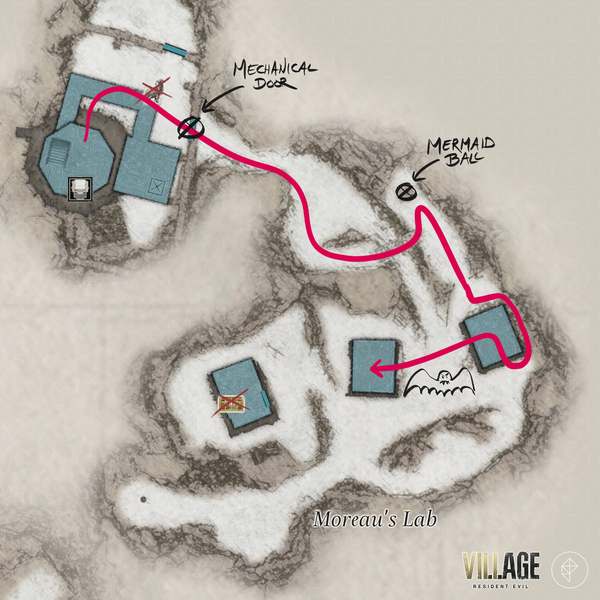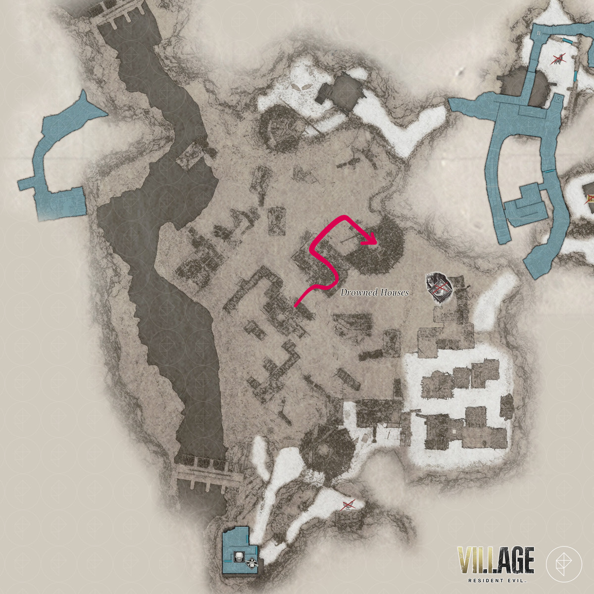 레지던트 이블 빌리지 의 "장미 수집 : 2/4", "모로 탈출", 수문으로 전기 켜기, 수문 열기 " 및 "출구 찾기 " 목표를 통해 East Old 를 통과 할 수 있습니다. RE8 의 Waterwheel 무기를 찾을 수있는 Town, Windmill Shack, 저수지, Drowned Houses 및 Moreau의 실험실 지역— GM 79 유탄 발사기 , 자물쇠 , 희귀 동물 사진 , 보트 키 , M1911 – 대용량 매거진. , 크랭크 , 머메이드 볼 ,M1851 Wolfsbane, Chartreuse Skull , Pigeon Blood Stone , Six-Winged Unborn 주요 키 아이템.