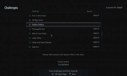 | 다카 다카스토리에서 돌격 소총으로 180 명의 적을 처치하십시오 | 27000 CP |