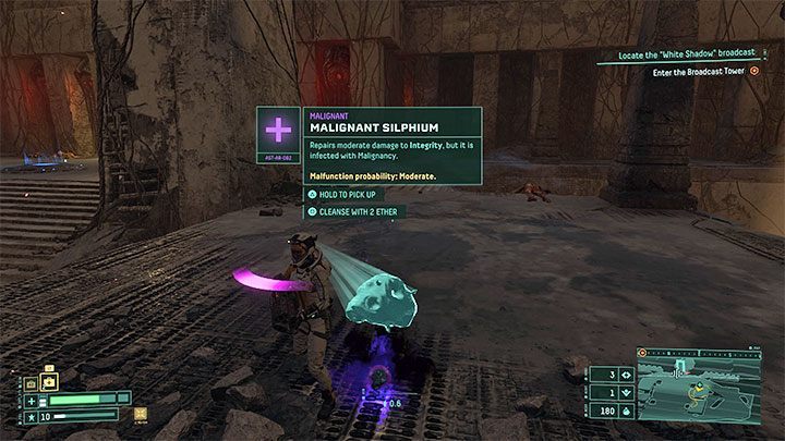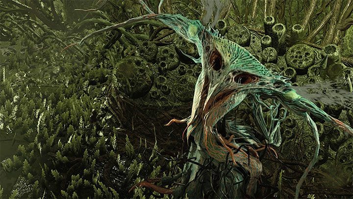 트로피를 얻으려면 기생충을 찾기 위해 가능한 한 많은 장소를 탐험해야합니다. 기생충은 위의 그림과 유사한 지역에서 특히 흔합니다. 그곳에서 발견되는 모든 보라색 "꽃"을 파괴하고 그들이 떨어지는 것을 확인하십시오.