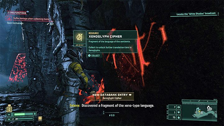 댓글 :이 트로피는 아주 쉽게 얻을 수 있습니다. 게임의 첫 번째 지역 / 바이 옴 인 Overgrown Ruins를 탐험하는 동안 첫 번째 Xenoglyph를 찾을 수 있습니다. Selene이 자동으로 스캔 할 수 있도록 상호 작용하기 만하면됩니다.