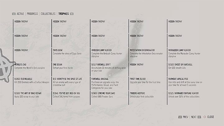 Days Gone : 트로피