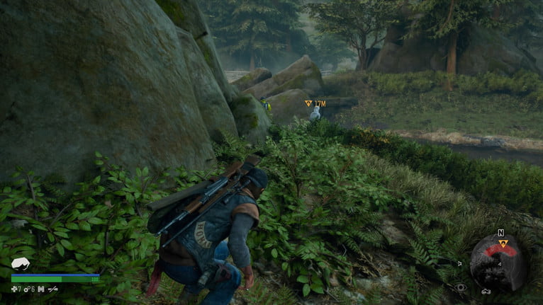 Days Gone 의 좀비 버전은 빠른 종류입니다. 그들은 서둘러 당신에게 달려 갈 것입니다. 웅크 리고 몰래 다가가는 것이 가장 좋습니다. 화면 오른쪽 하단에있는 눈 아이콘은 시각과 청각 모두에 해당합니다. 천천히 움직이면 작은 "x"가 그 위에 남습니다. 눈치 채지 못한 채 뒤에서 Freaker에게 다가 가면 부츠 나이프로 스텔스 테이크 다운을 할 수 있습니다. 가능한 한 많은 스텔스 테이크 다운을 수행하십시오.