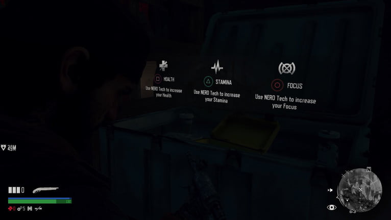 R3 (오른쪽 썸 스틱 아래)을 누르면 Focus가 활성화됩니다. 초점은 고철부터 근접 무기, 재료, 의료 키트, 폭발물 제작 재료에 이르기까지 해당 지역의 아이템 위치를 비 춥니 다. 건물 안이나 주변에있을 때마다 Focus를 활성화해야합니다.