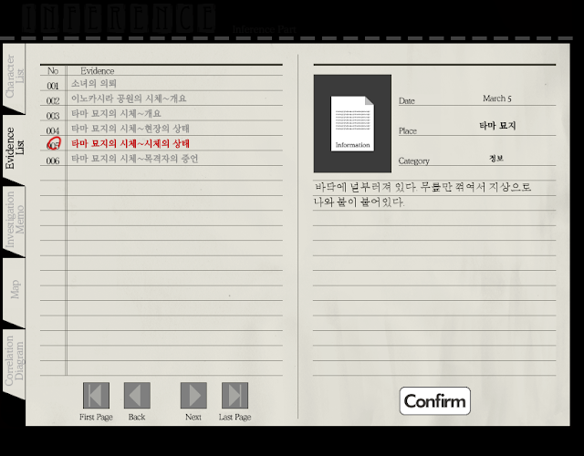 수첩 옆에 항목이 붙어있어 강제로 항목에서 선택 장면이 있지만, 다른 항목을 볼 수 없습니다. (피의자를 선택할 때 증거품을 참조 생각할 수 없게. 그 시간이 아니면 볼 수 가)
