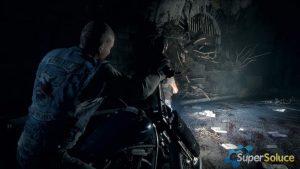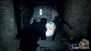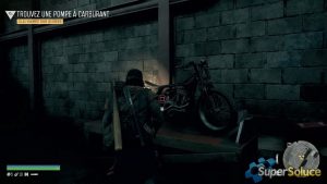 싸움이 끝나면 구멍을 통해 건물에 들어갑니다 ( picture32 ). 하단에서 돌연변이를 제거하고 뒤쪽의 차고로 향한 다음 왼쪽의 오토바이를 조사하여 연료 펌프를 회수하십시오 ( pictures33-34 ).